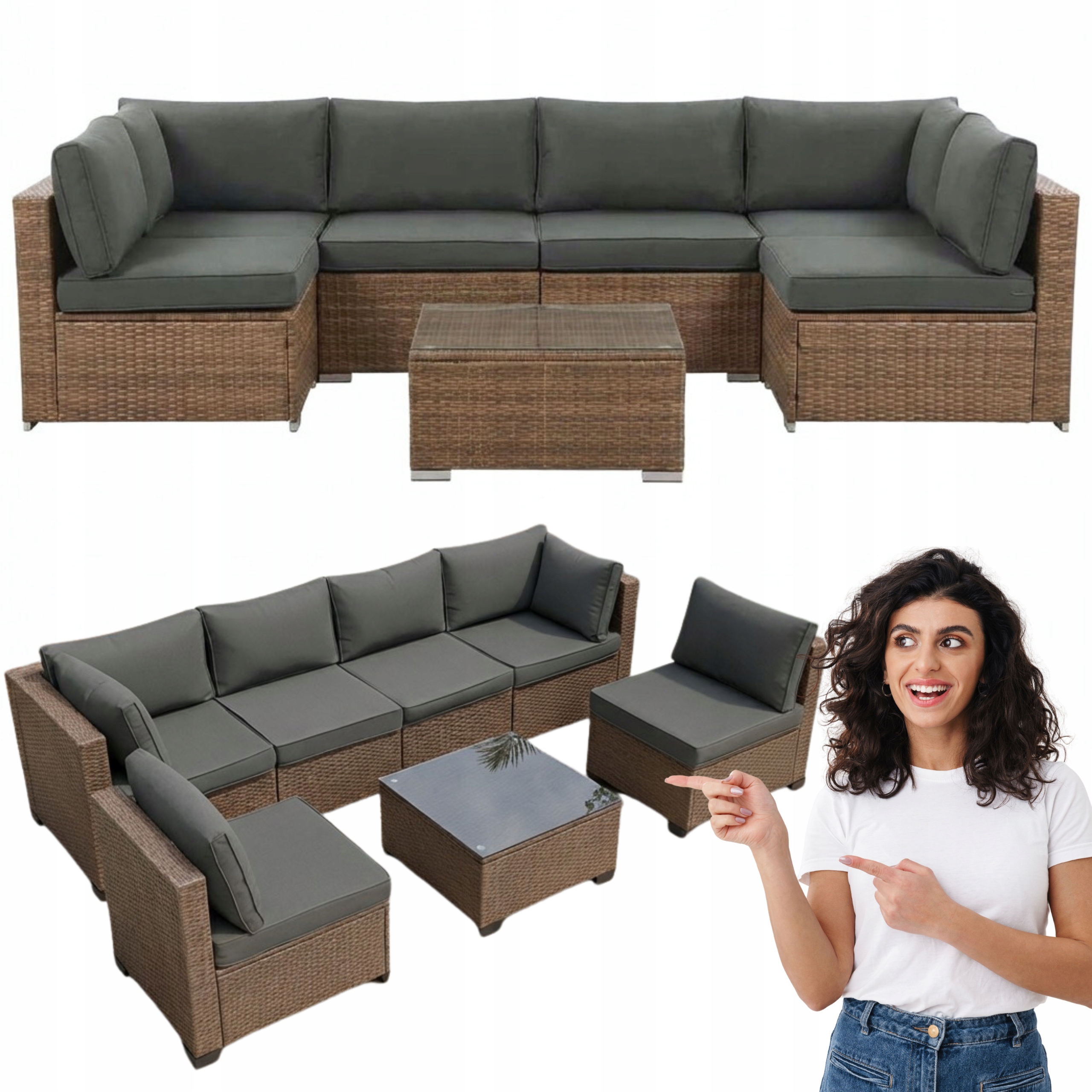 - 🧩 Modułowa konstrukcja: Zestaw składa się z niezależnych elementów, co pozwala na dowolną aranżację – możesz stworzyć jeden duży narożnik lub oddzielne strefy siedzenia.